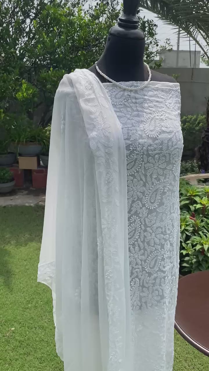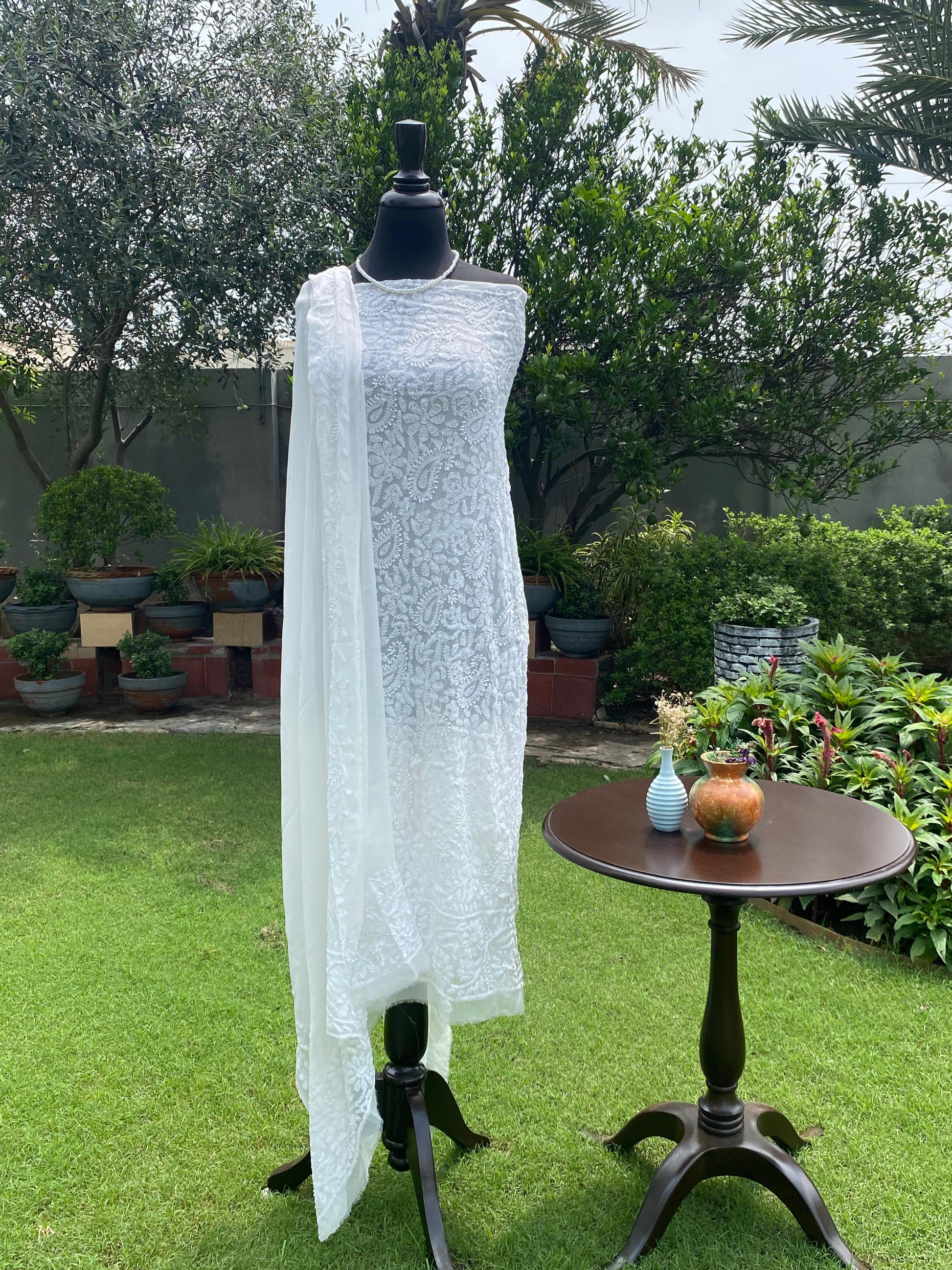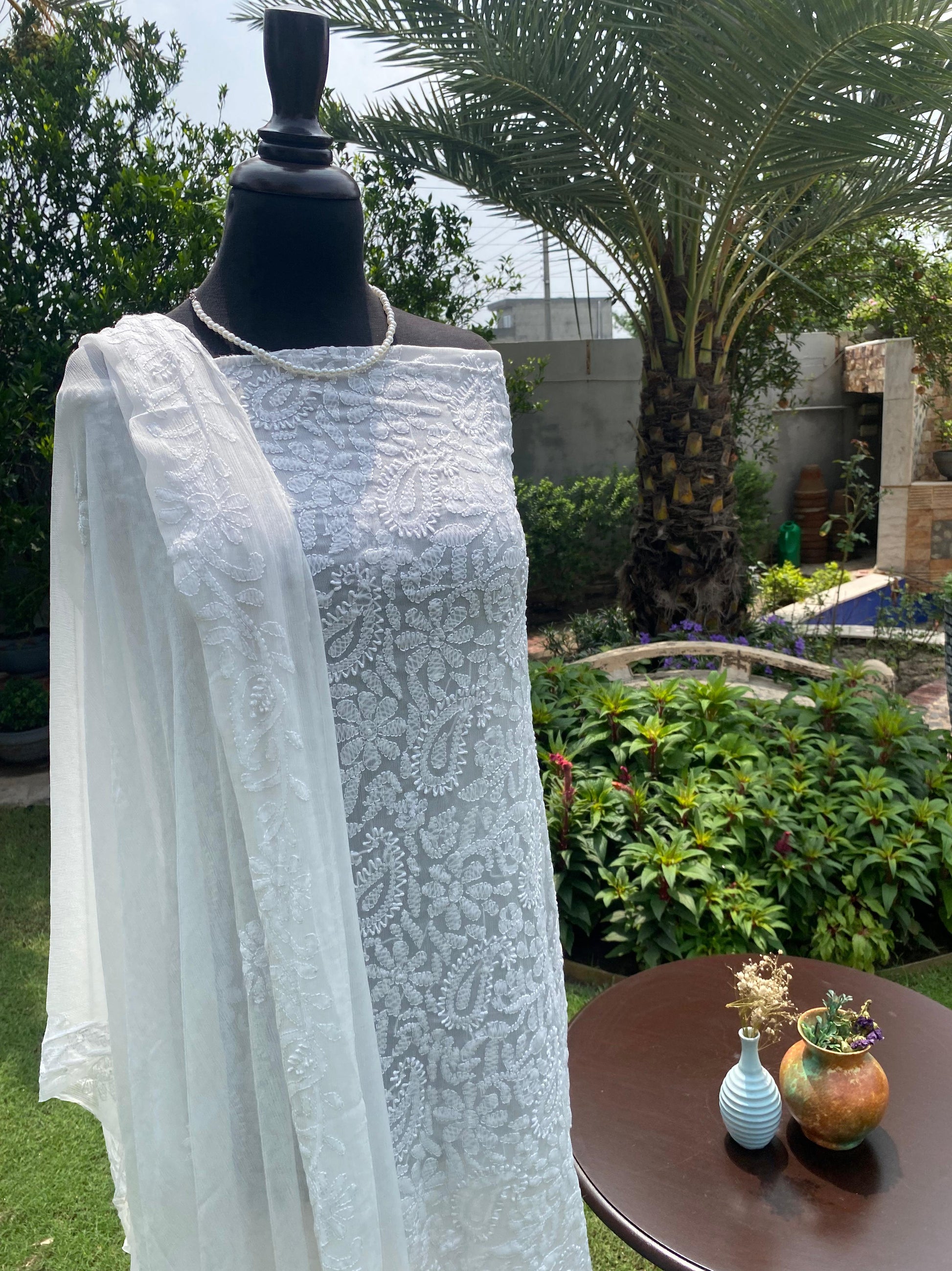 Elegant and timeless, this white 2-piece suit features beautiful handmade Dhaga embroidery that adds charm and sophistication. A versatile piece, perfect for summer events, Eid, or casual gatherings.