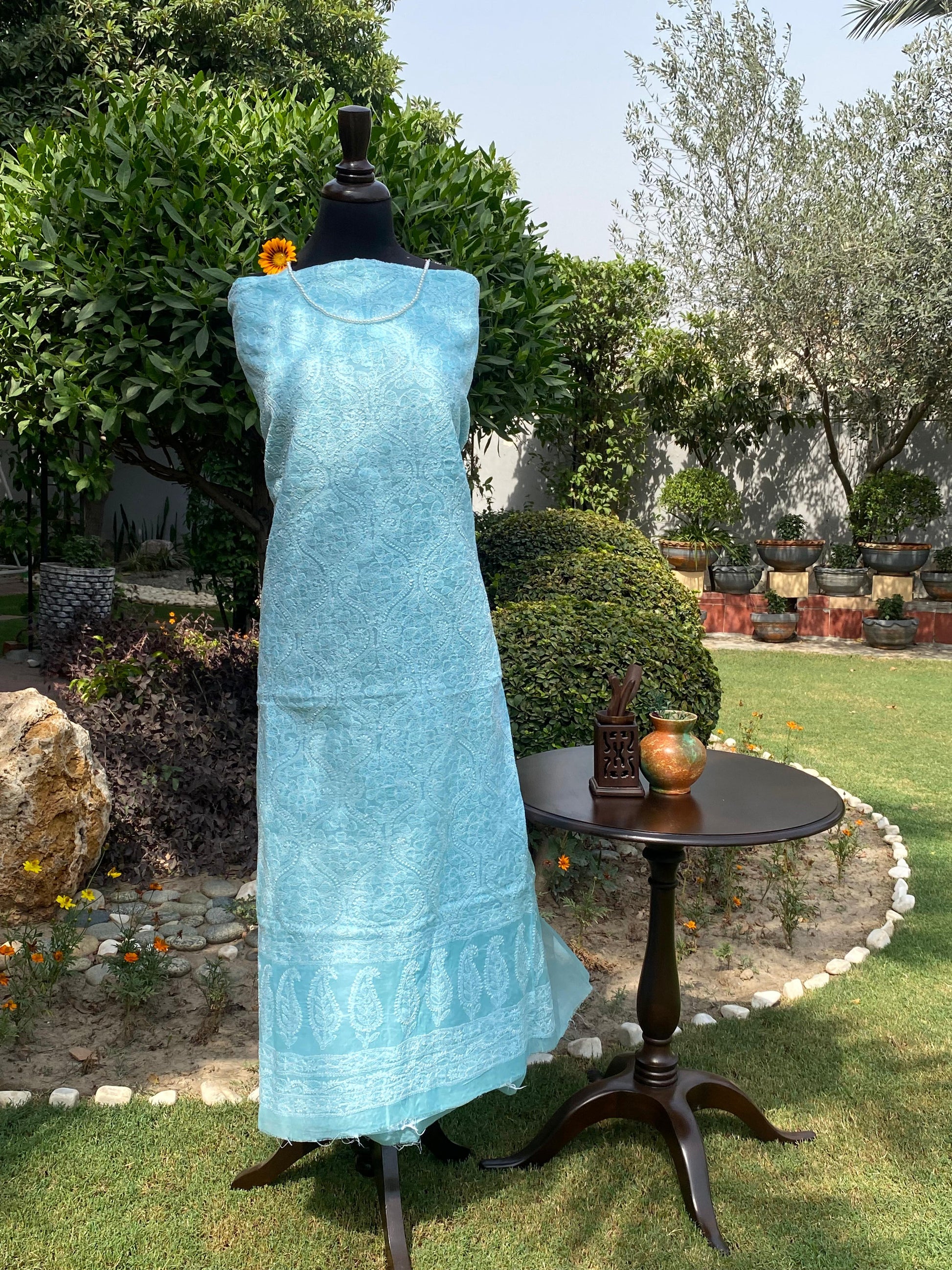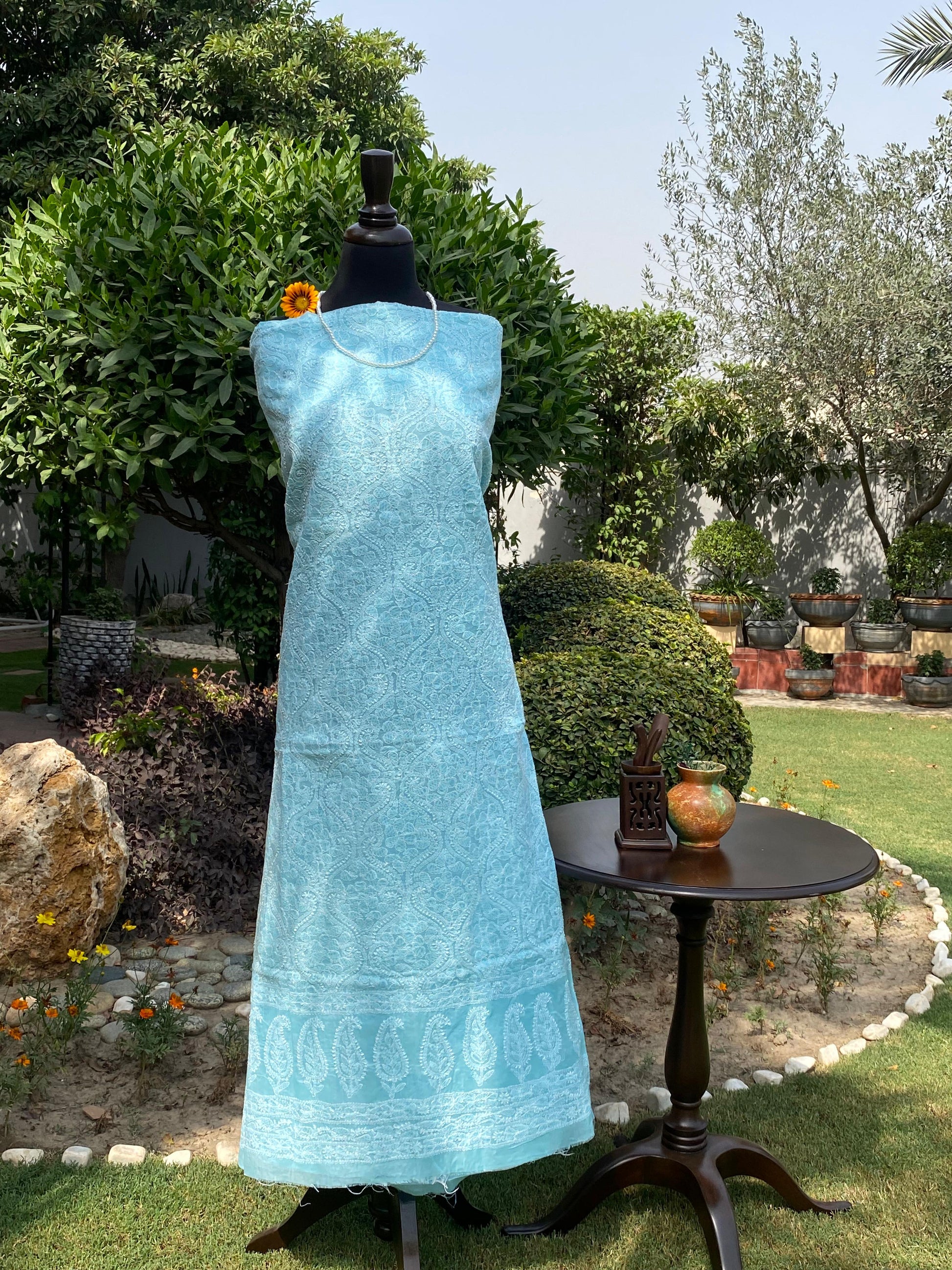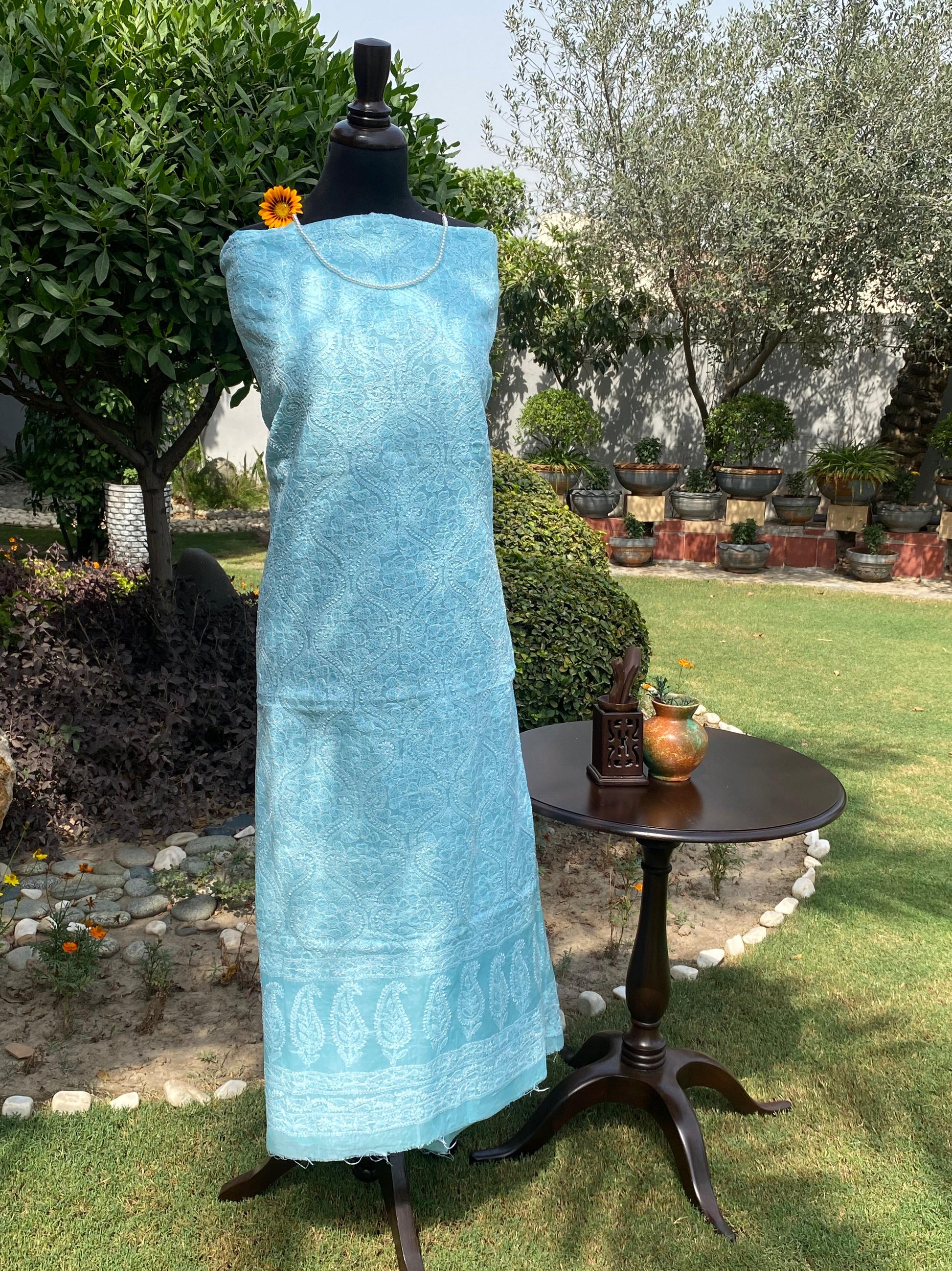Premium Indian Handmade Lawn In Sky Blue