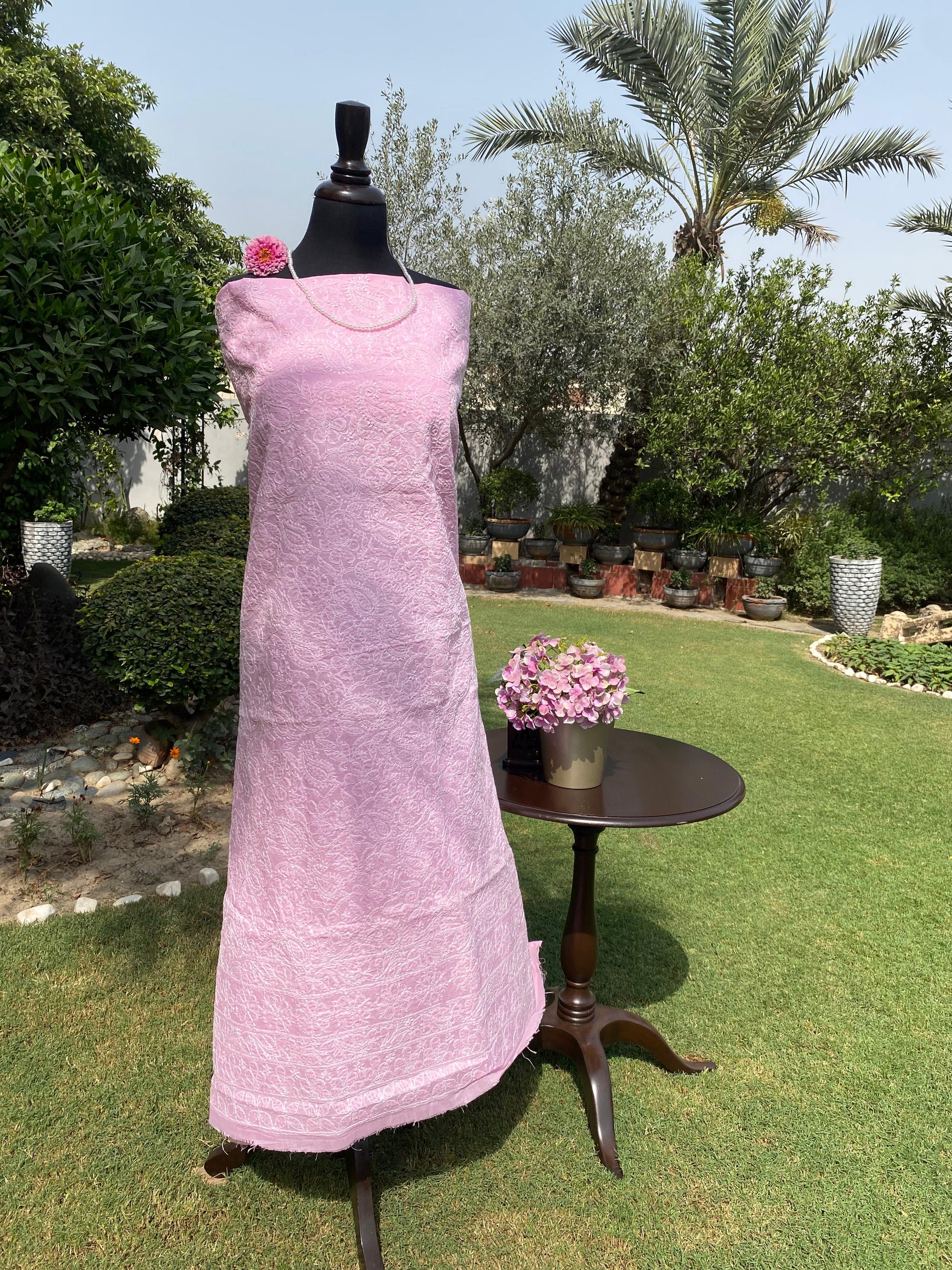 Premium Indian Handmade Lawn Suit In Baby Pink
