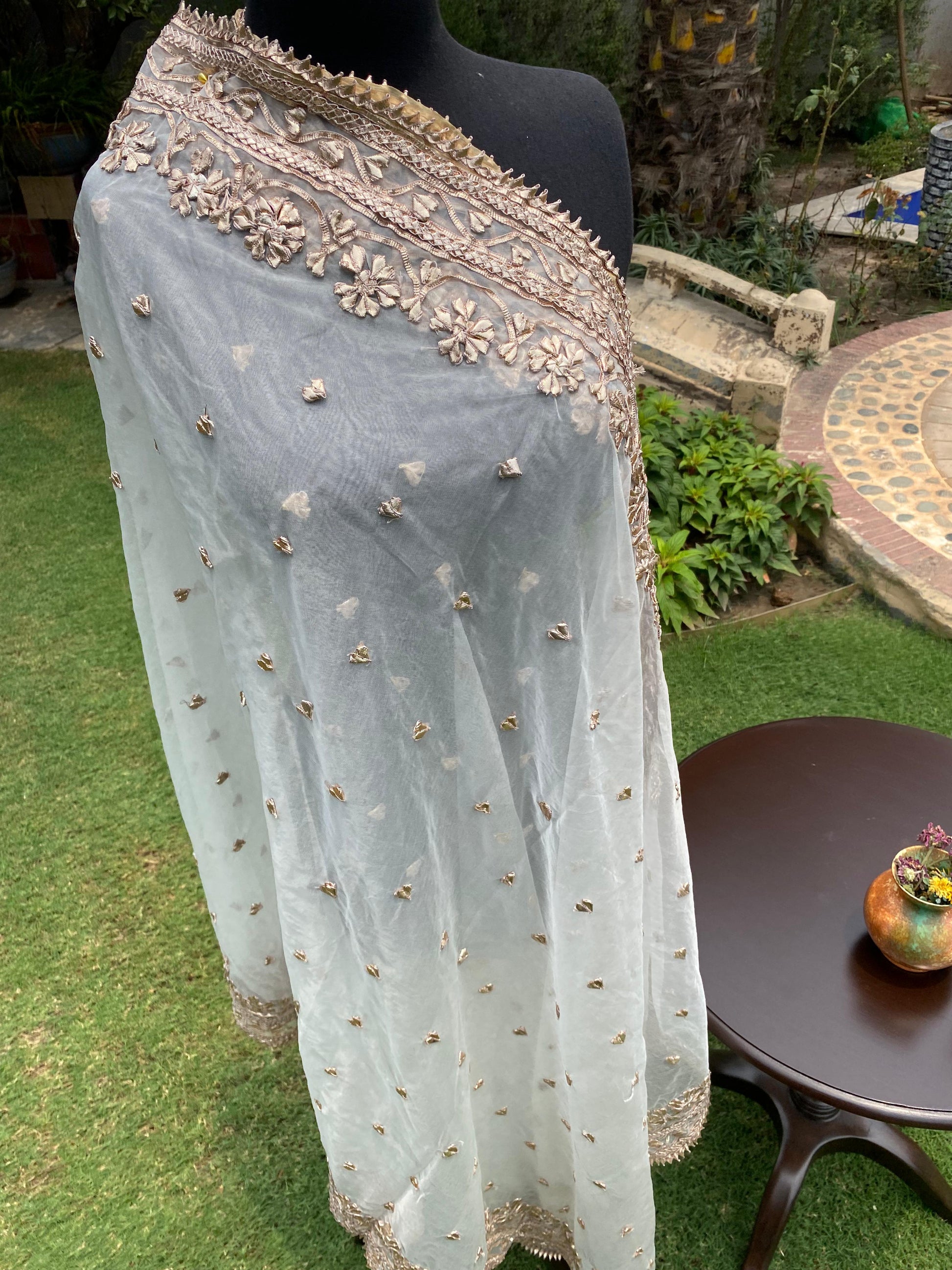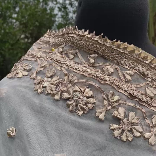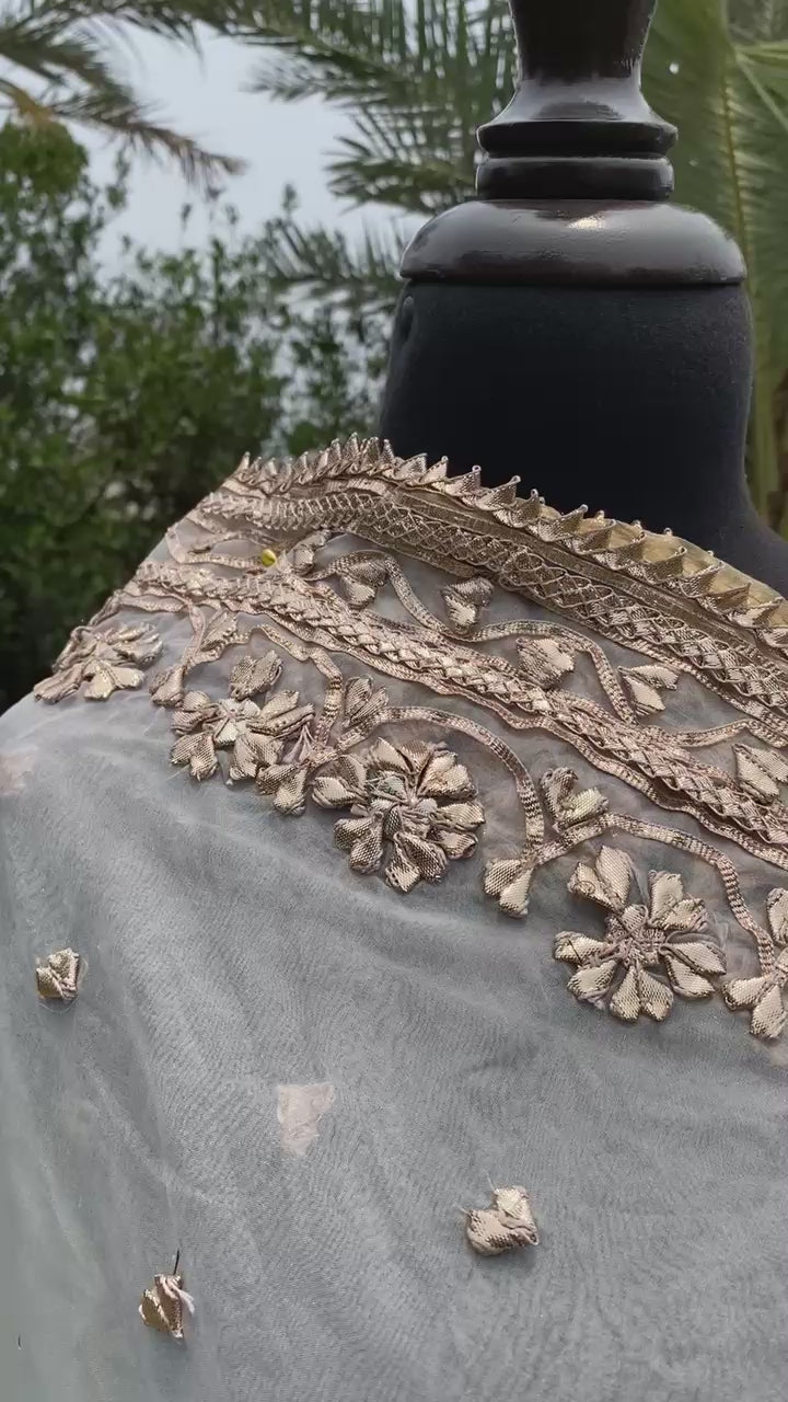 Adorned with intricate handmade Gota embroidery